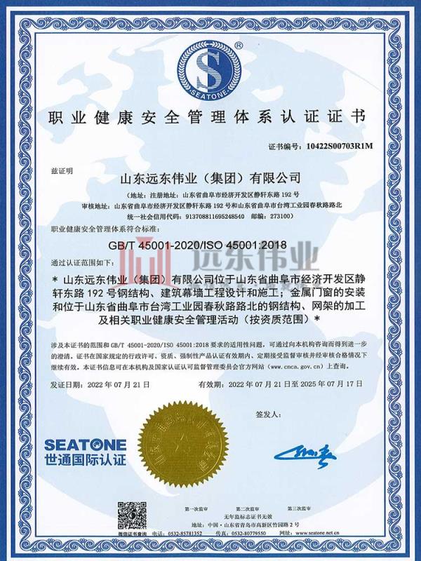 職業(yè)健康安全管理體系認(rèn)證證書 2023-09-13 09:25:44 上一條:重合同守信用企業(yè) 下一條: 環(huán)境管理體系認(rèn)證證書 相關(guān)資訊 夯實(shí)基礎(chǔ)·砥礪奮進(jìn) | 重慶龍... 正在施工的和新承接的項(xiàng)目情... 近年完成的類似項(xiàng)目情況表... 關(guān)于加強(qiáng)項(xiàng)目部農(nóng)民工工資支... 熱門推薦 黃海明珠中心 濟(jì)寧運(yùn)河城 開(kāi)發(fā)區(qū)萬(wàn)達(dá)廣場(chǎng) 中國(guó)重汽濟(jì)寧商用車有限公司