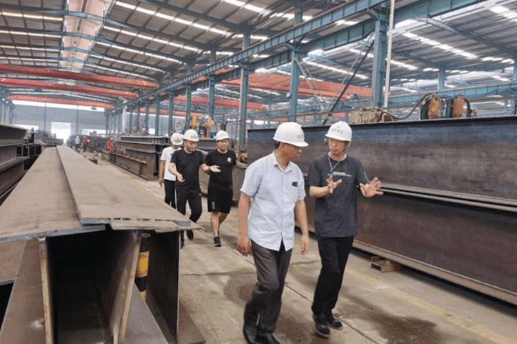 隨后,公司領(lǐng)導(dǎo)陪同考察組成員去往鋼結(jié)構(gòu)加工車間、網(wǎng)架加工車間、管桁架加工車間進行實地考察,考察期間由公司領(lǐng)導(dǎo)詳細介紹了公司產(chǎn)品的型號、性能及特點并與考察組成員進行了討論交流。公司始終視質(zhì)量為生命,始終堅持“質(zhì)量保障、信譽至上”的原則,嚴格貫徹ISO9001:2000質(zhì)量管理體系標準,并取得了認證,創(chuàng)造了許多高品質(zhì)工程,近年來,先后完成多項國家重要工程項目,其產(chǎn)品的質(zhì)量受到廣大用戶的一致好評。山東高速集團領(lǐng)導(dǎo)在實地考察后對于我公司的實力也給予高度肯定。